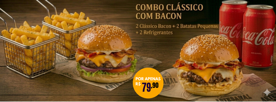 2 Clássico Bacon. 2 Batata 70g 2 Refrigerantes 350ml